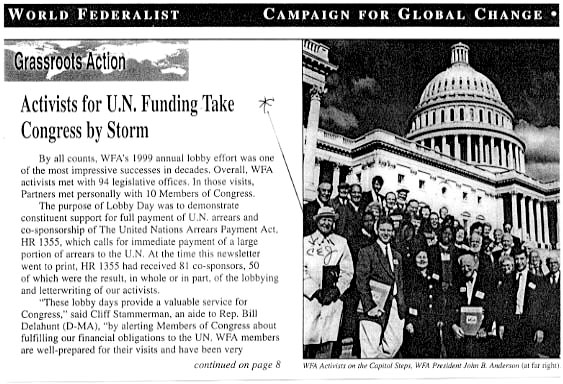 secretary is William Pace. Its web page is at http://www.worldfederalist.org. Its main program areas are: 1) Strengthening the